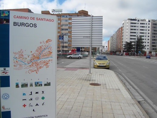 오르바네하 리오 피코 이후부터는 도로를 따라 계속 걷는다. 공항 주변 도로를 돌아서 철로 위 고가를 지나면서부터는 편도3차로의 큰 대로를 따라 하염없이 걷게 된다. 대로에 들어설때 부르고스까지 10km 표시를 봤는데, 부르고스까지 그냥 직선으로 곧게도 뻗어 주신다. 보이는 거라고는 도로와 건물뿐이다. 산길, 들길만 걷다 도로변 인도를 걷자니 왠지 모르게 낯설다.