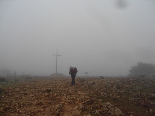 아따푸에르까에 도착해보니 8시가 조금 안된 시각이라 문을 연 바가 없다. 쉬어갈 곳이 마땅히 없어 그냥 눈에 보이는 알베르게에 들어갔는데 밖에 의자는 다 젖어 있고, 결국 수통만 채우고는 바로 떠난다. 아따푸에르까 마을을 벗어나자마자 오르막 길이 시작된다. 안개인가 잔뜩 낀 돌길을 한참을 올라간 후에 완만한 내리막 길을 걷게 된다. 왼쪽으로는 군사지역이라고 길을 따라 철조망이 쳐져있는데, 군 시설물은 보이지도 않는다.
