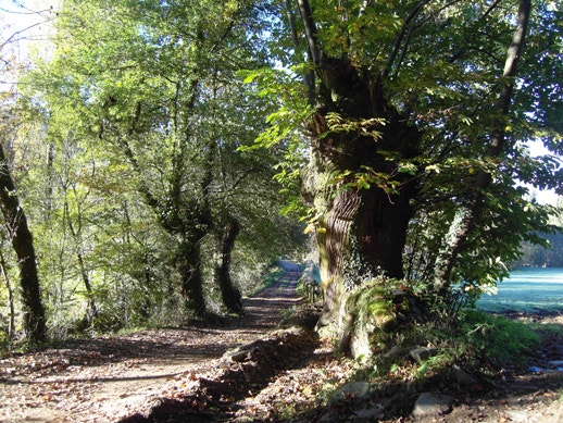 도로를 따라가는데 사리아까지 20.5km라는 표지가 나온다. 지영이가 26km 거리라고 했는데 어떻게 된걸까? 첫 번째 마을을 지나면서 도로를 벗어나 산길로 접어든다. 도로를 따라가면 20km, 산길로 가면 26km. 확, 도로를 따라 걸어버려. 문제는 인증샷을 찍어가야 한다는 것. 도로를 따라 남자끼리 걷고 있으려니 흥이 안났는데 산길로 접어들면서 길이 너무나 아름답다. 양 옆으로 큰 나무들이 빽빽이 자라나 있는 오솔길을 계속 걷고 있으려니 나무로 된 굴을 지나는 것 같다. 싱그러운 풀내음에 신선한 공기하며 지금까지 걸어왔던 산티아고 길과는 너무나 다른 느낌이다. 지금와 생각하지만 갈라시아 지방에서 가장 다시 걷고 싶은 길을 꼽으라면 난 이 구간을 주저 없이 뽑겠다. 그만큼 아름답고 매력적인 길이다.