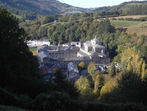 고개를 하나 넘어서 내려가는데 길 오른쪽 언덕 밑으로 수도원 건물이 나타난다. 수도원 건물답게 산속에 지어졌는데 그 크기가 상당하다. 언덕에서 인증샷을 한방 박아주시고 내려갔더니 수도원 건물만 있는줄 알았던 곳에 큰 마을이 붙어 있다. 언덕 위에서는 나무에 가려 마을이 보이지 않았다. bar에서 맥주 한잔씩 하고 다시 출발하니 거의 정오가 다 되어간다. 다음 마을에서 식사하면 되겠구나. 마을을 나오면서 수도원이 있는 이곳이 사모스(Samos)라는걸 알았다. 사리아까지는 11km라고 도로 표지가 보인다. 중간에 식사하고 쉰다고 해도 3시 정도에는 떨어지겠구나 싶었는데 길이 도로에서 산쪽 고갯길로 연결되더니 계속 오르막 내리막, 2시간이 넘도록 쉴 수 있는 bar는 보이지도 않는다.