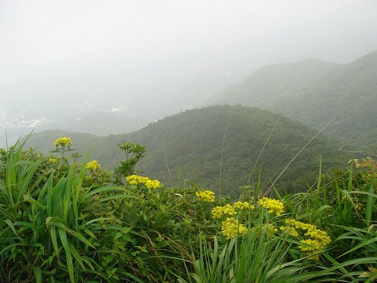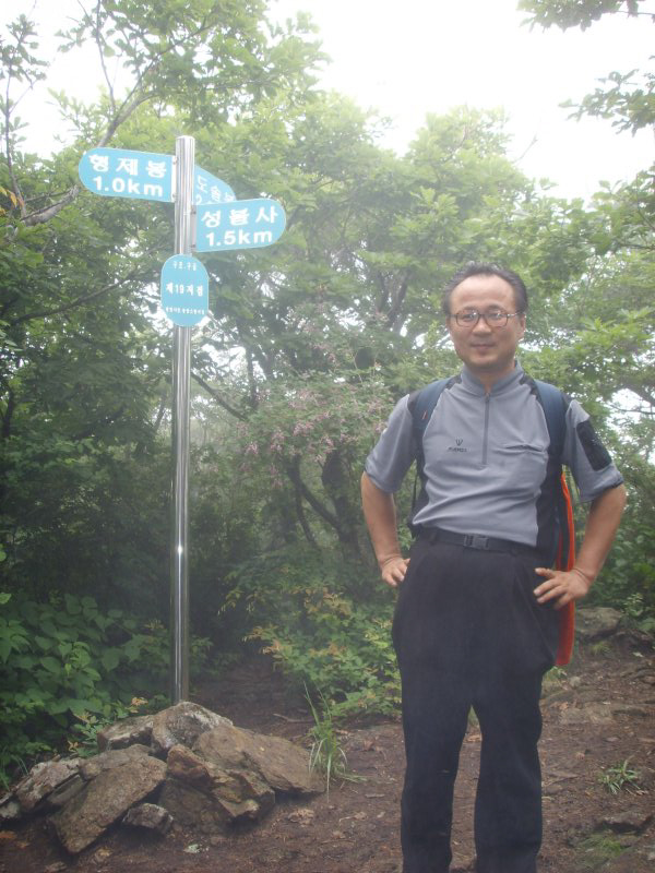 안개비 사이로 시야에 들어온 형제봉 능선에서 한컷