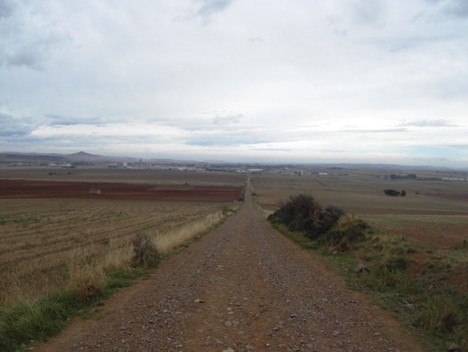 씨루에냐(Cirueňa) 마을을 지나면 벌판을 직선으로 가로지르는 쭉 뻗은 길이 나오고, 멀리 지평선 끝트머리에 솟아 있는 언덕이 보인다. 언덕을 넘으니 내리막 이후 다시 오르막으로 언덕의 연속이다. 길이 안보이면 생각을 안할텐데 거의 직선 길이라 언덕 정상에 오를 때마다 멀리 까지 보인다. 마을은 안보이고 걸어가야할 길만 주구장창 뻗어있으니 정신적으로 피로해진다. 저 멀리 다시 언덕이 나타난다. 이제는 마을이 보일 때가 된 것 같은데, 저길 올라가면 산토 도밍고가 보일까. 올라가보니 아니나 다를까 멀리 도시가 보인다. 이제는 산티아고 길에 적응한걸까 아니면 걷는 거리에 감이 생긴 것일까. 대충 이쯤이겠지 하면 마을이 나타난다. 언덕에서 볼때는 그래도 가까워 보이던 길이 직접 내려가니 상당히 멀다. 씨루에냐에서 산토도밍고까지 6km라고 하는데 느낌은 10km이상 걸은것 같이 피곤하다.